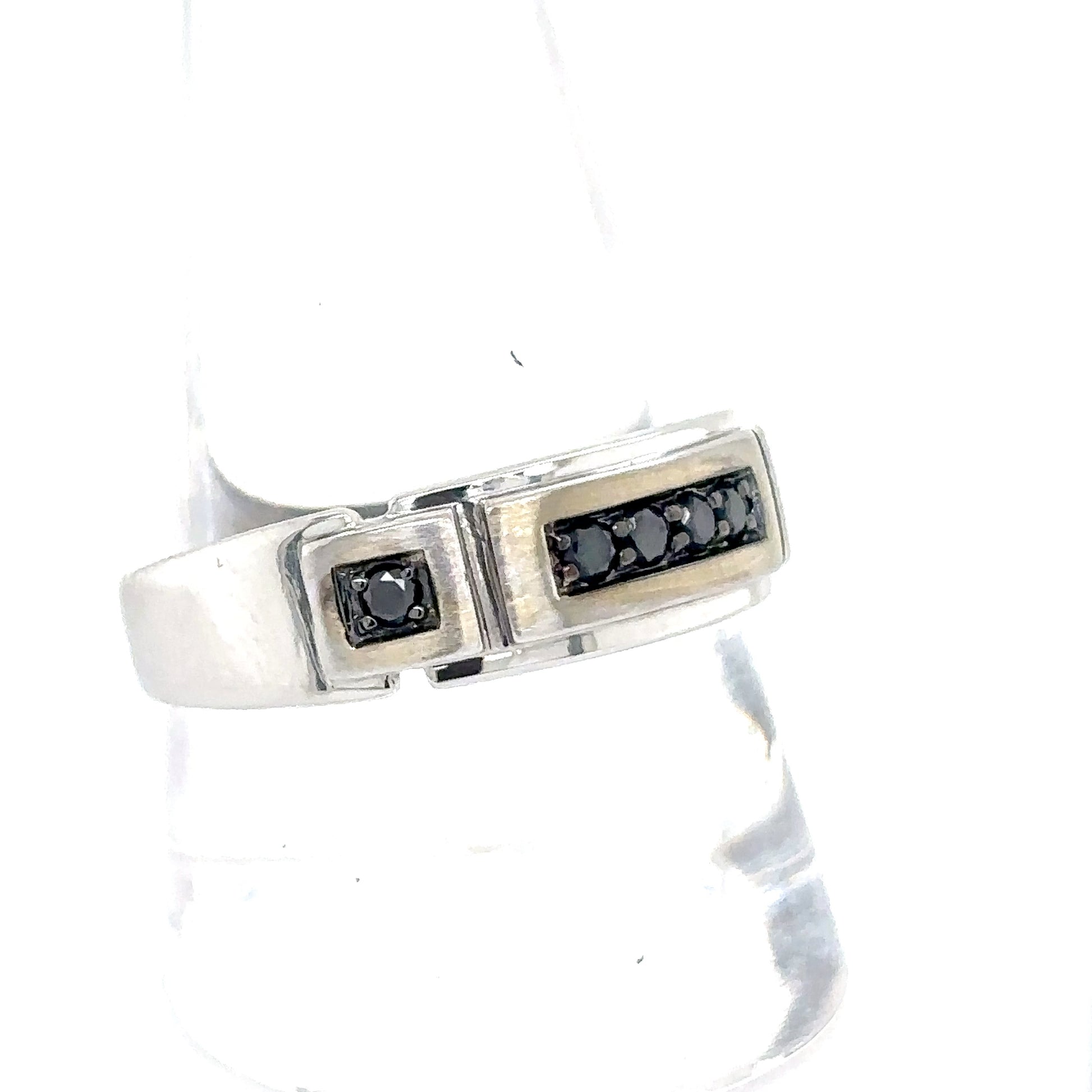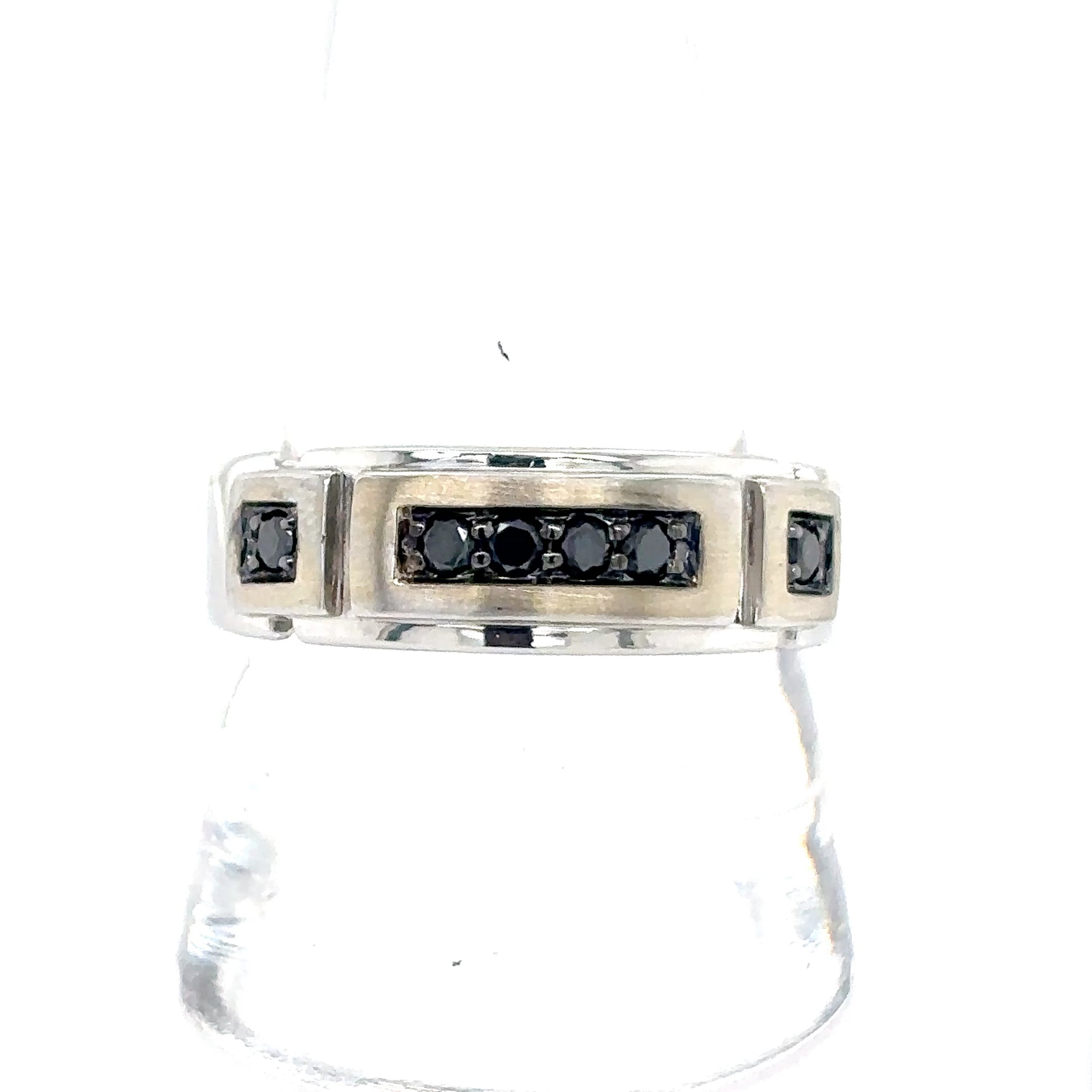 Solid 10 Karat White Gold Diamond Brushed Band Style Ring.
