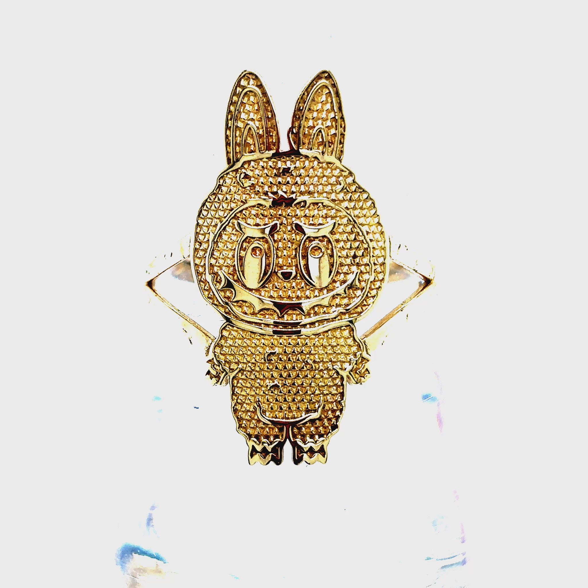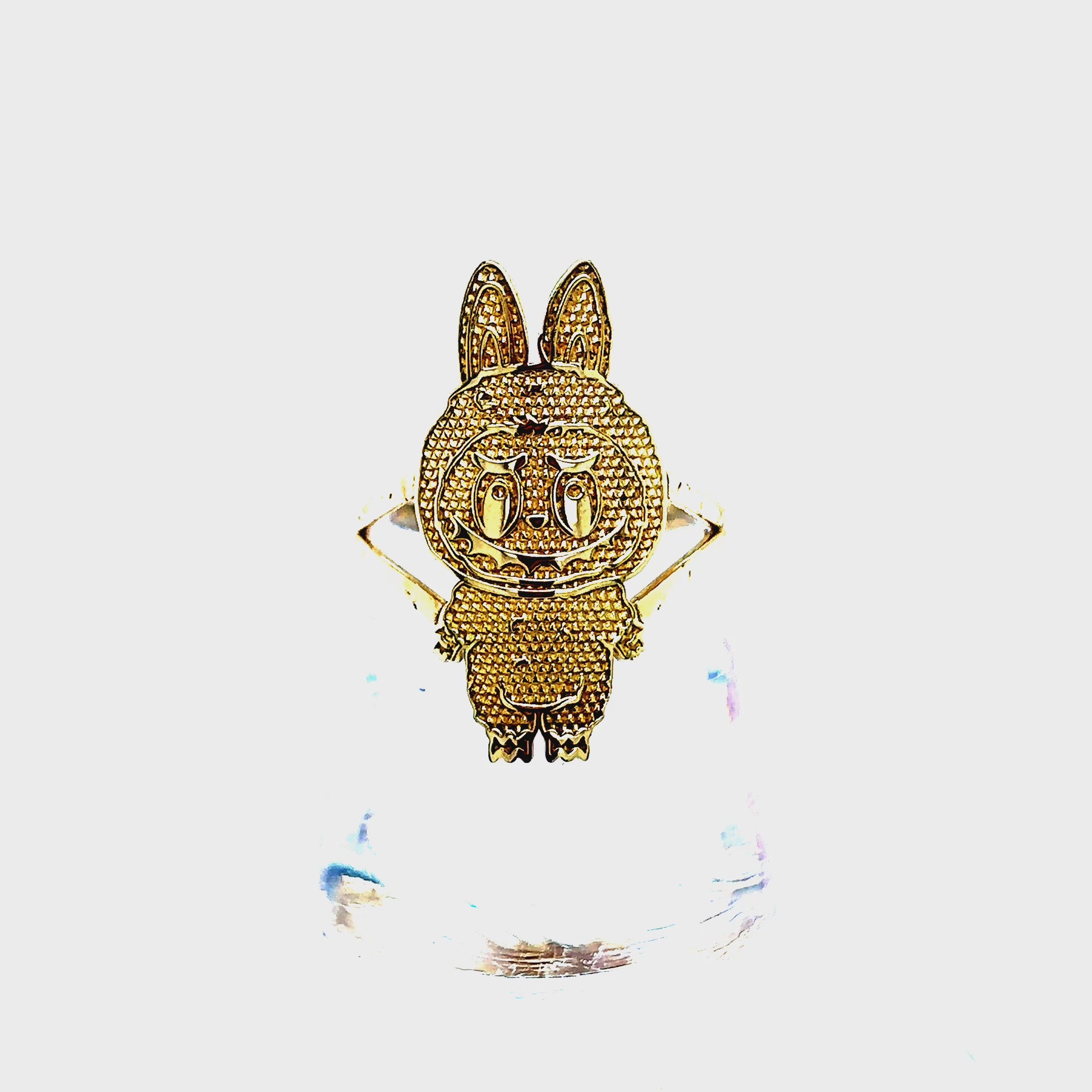 Solid 10 Karat Yellow Gold Labubu Shaped Ring.
