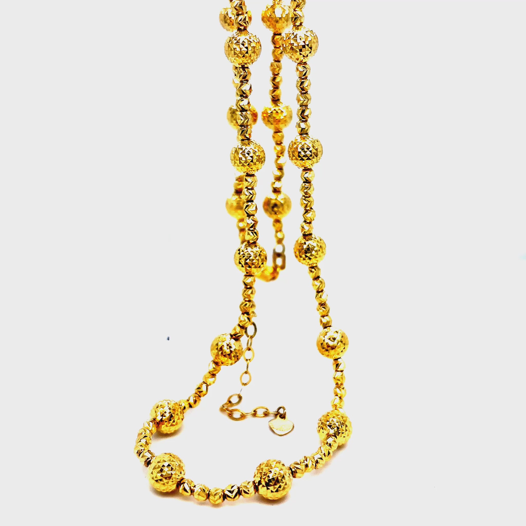 Solid 14 Karat Yellow Gold Beaded Necklace.