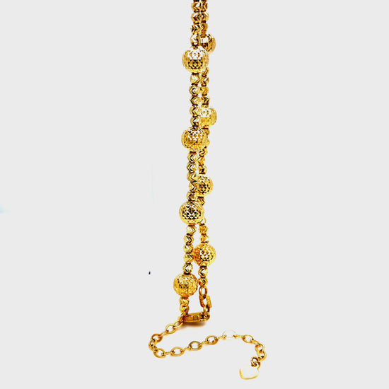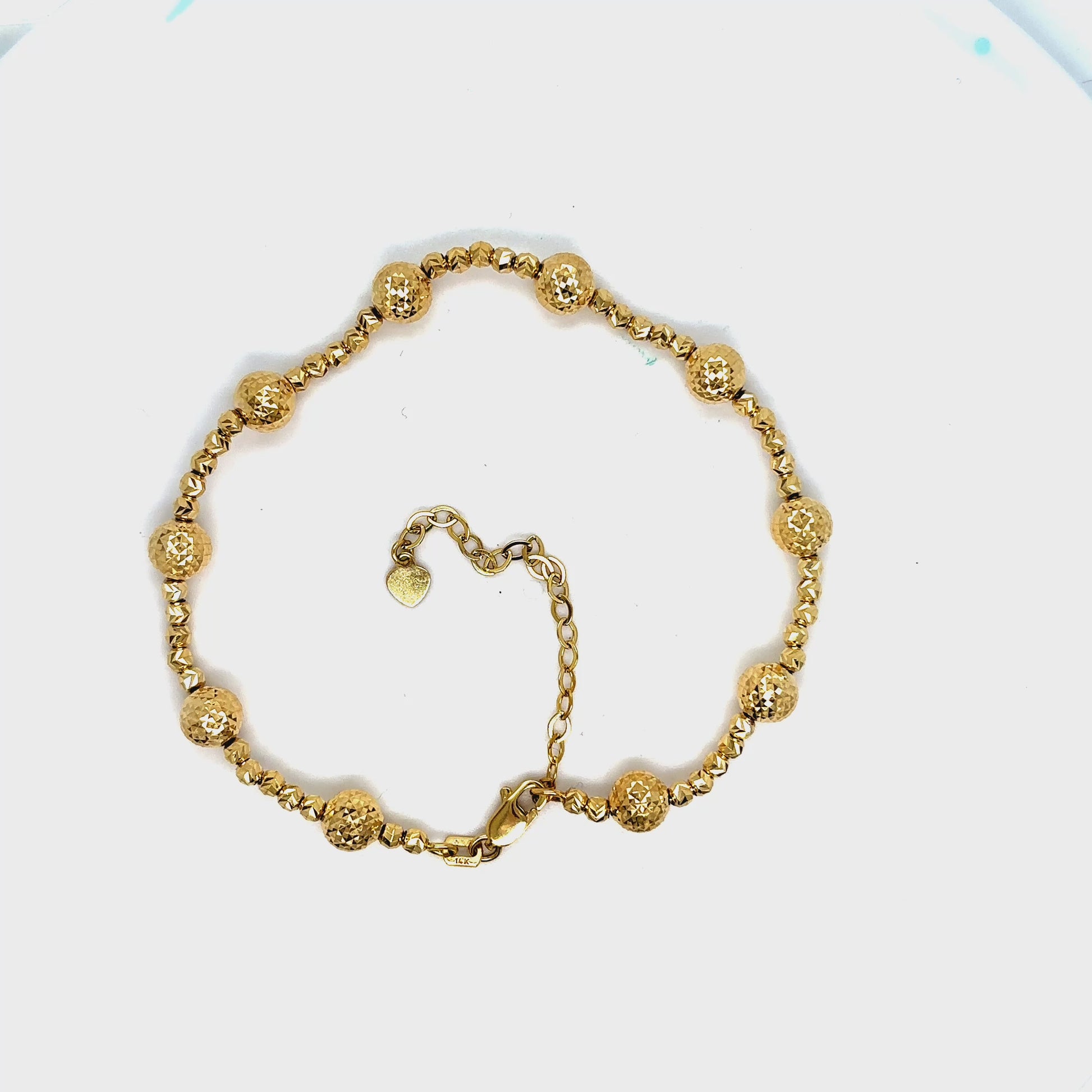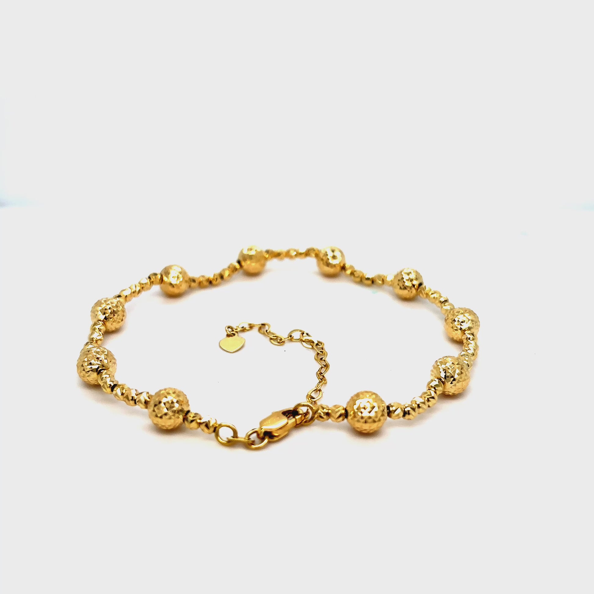 Solid 14 Karat Solid Yellow Gold Diamond Cut Beaded Bracelet.