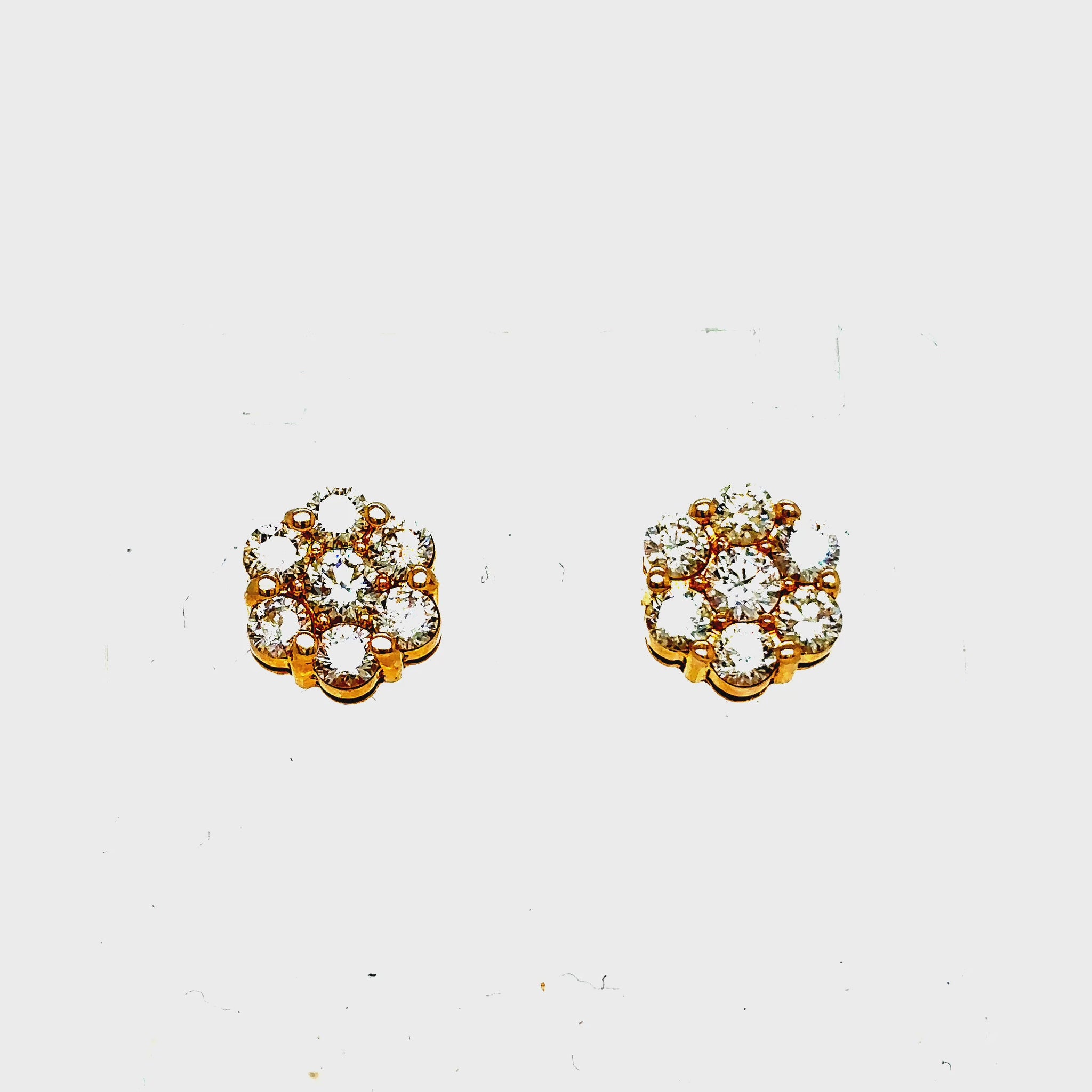 Solid 14 Karat Yellow Gold Diamond Round Cluster Flower Set Earrings