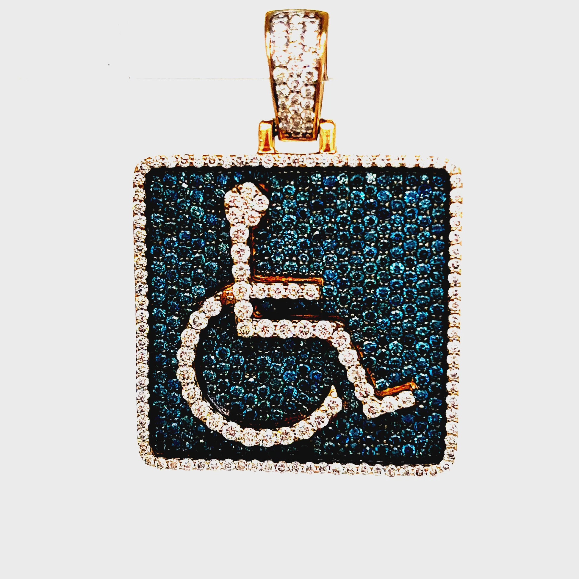 Solid 14K Yellow Gold Blue and White Diamond Handicap Sign Pendant