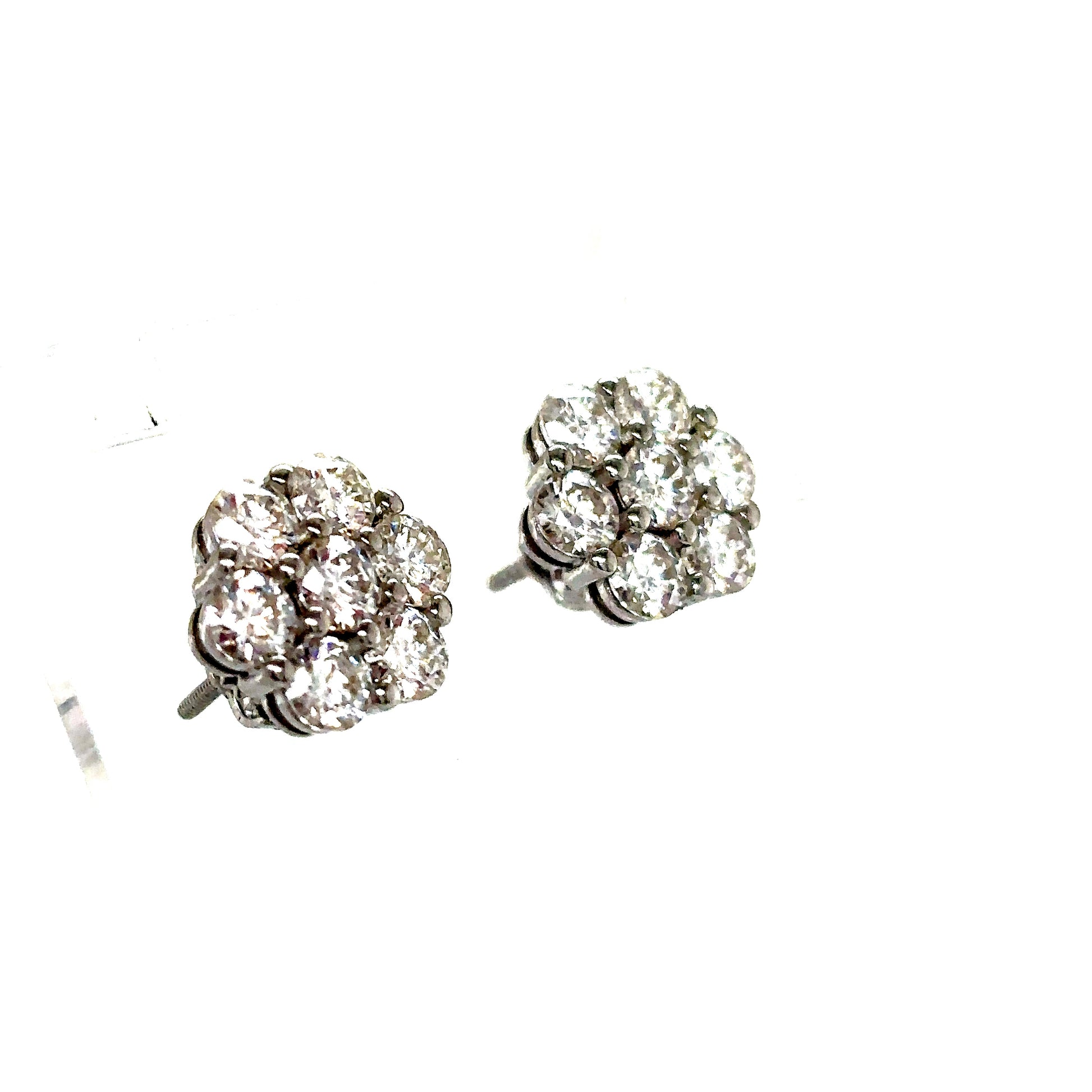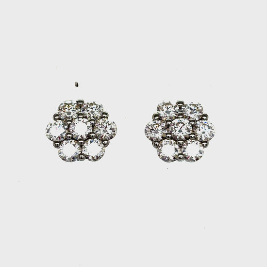 Solid 925 Sterling Silver Flower Style prong set earrings with Round VVS GRA Certified Moissanite stones.