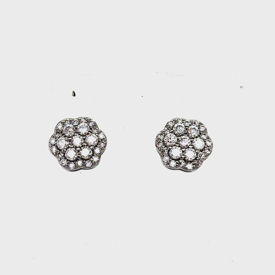 Solid 925 Sterling Silver 2-Tier Flower Style prong set earrings with Round VVS GRA Certified Moissanite stones.