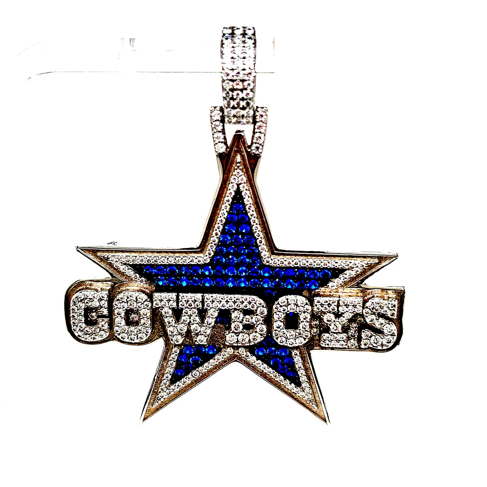 Solid 925 Sterling Silver Blue Cowboys Star Pendant with Round VVS Moissanite Stones.