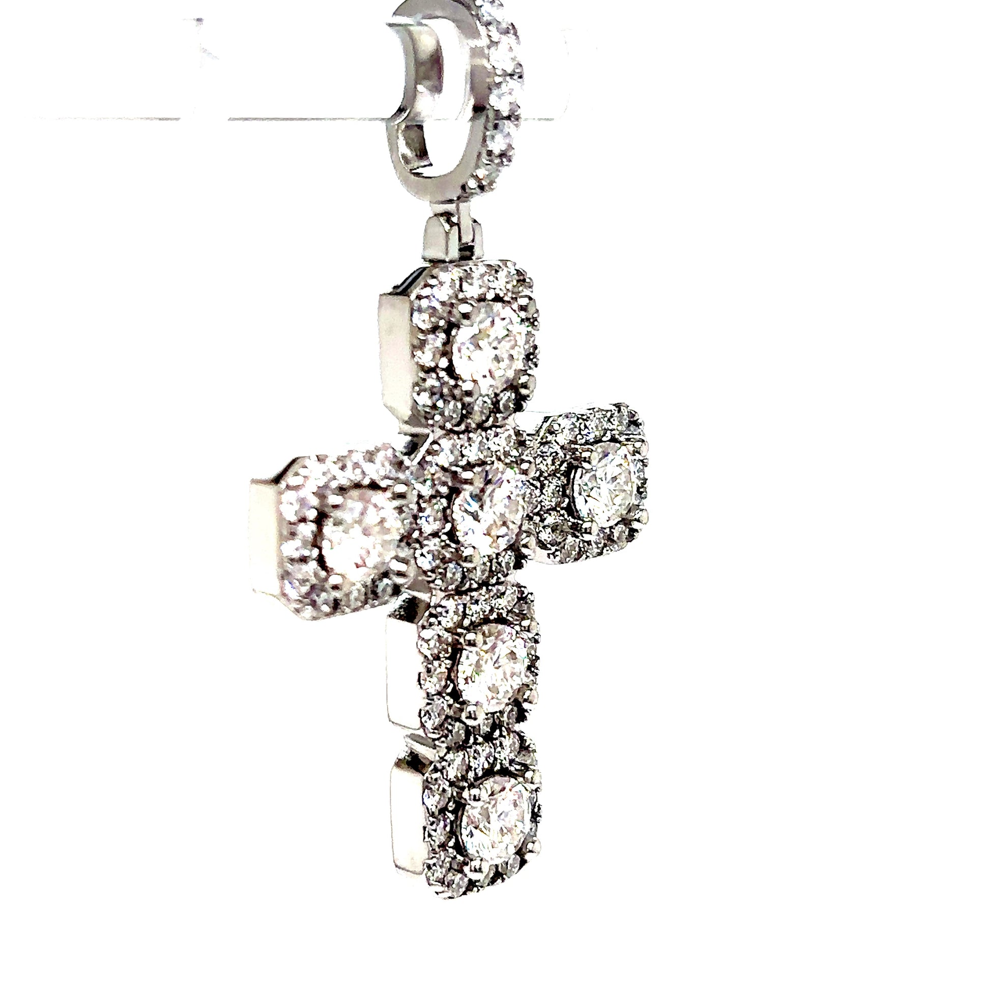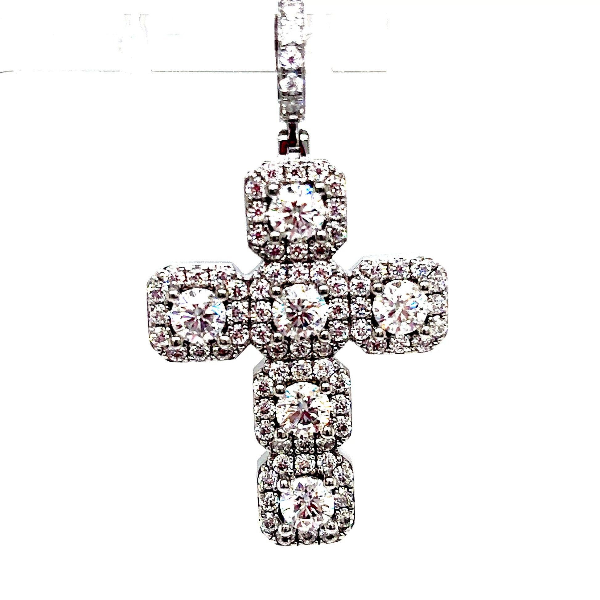 Solid 925 Sterling Silver VVS Moissanite Cross Pendant. Prong set stones.