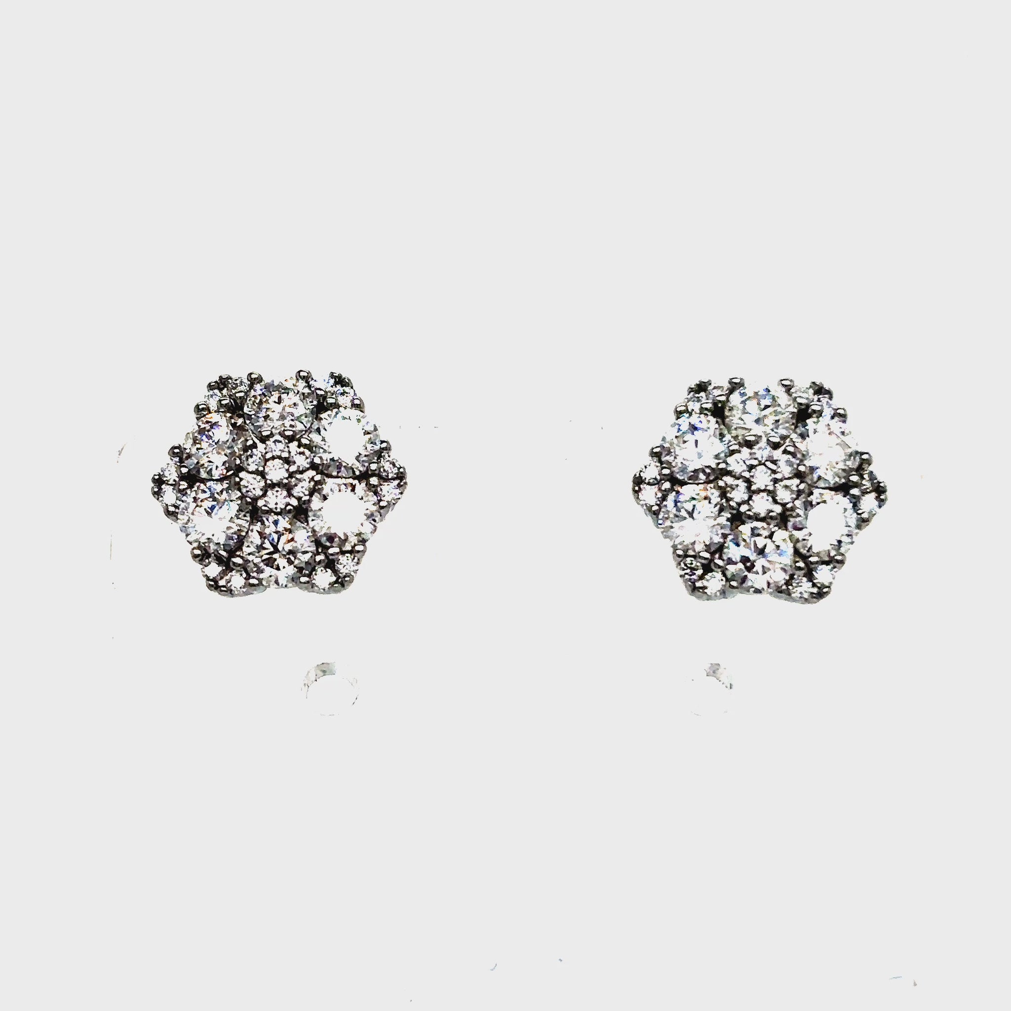 Solid 925 Sterling Silver Snowflake Flower Style prong set earrings with Round VVS GRA Certified Moissanite stones.