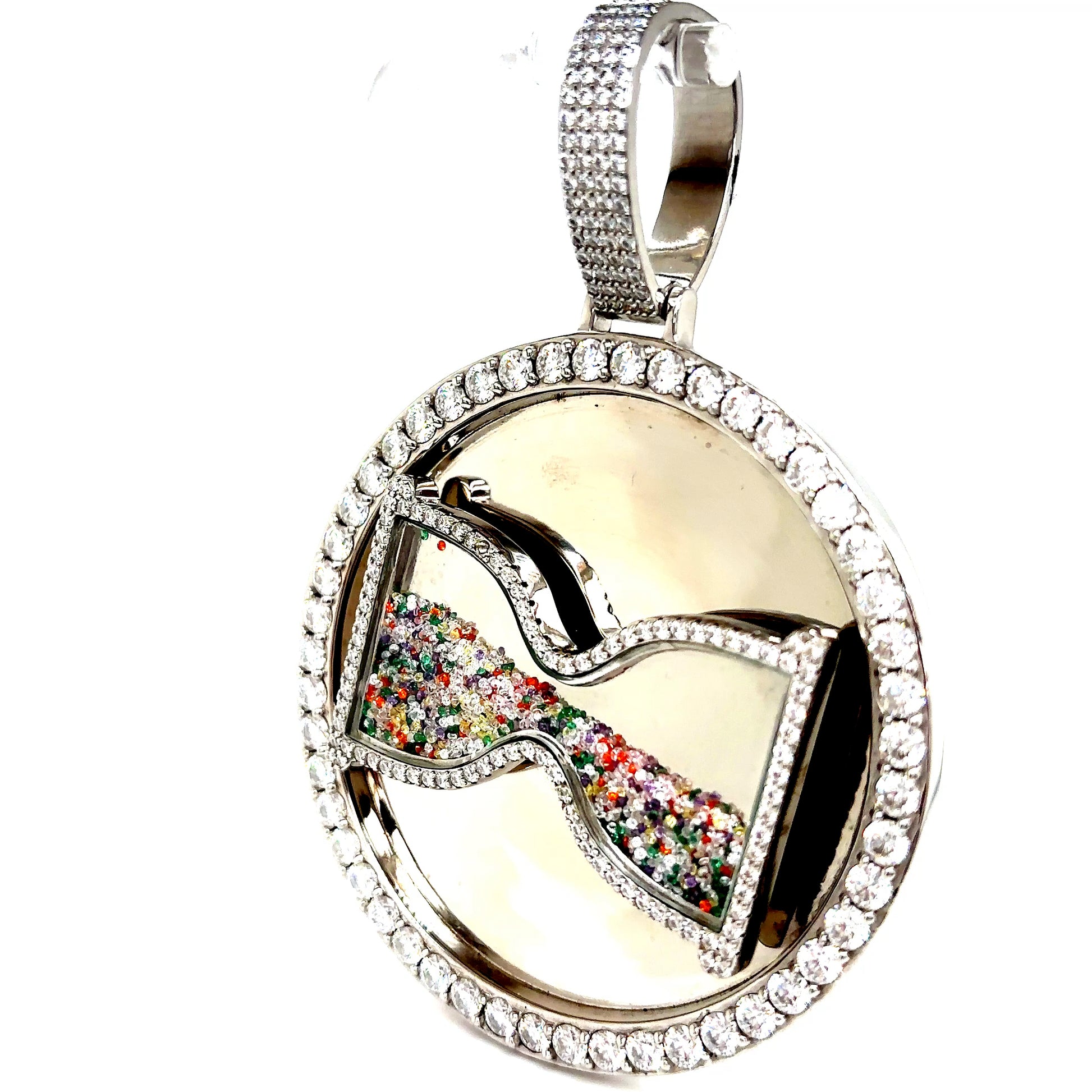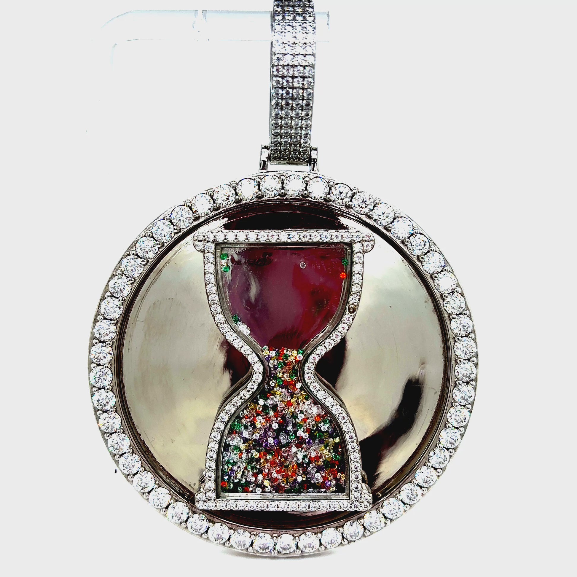 Solid 925 Sterling Silver Spinning Hourglass Pendant with Round VVS Moissanite Stones. Loose Moissanite stone to represent sand. Custom Large Bale.